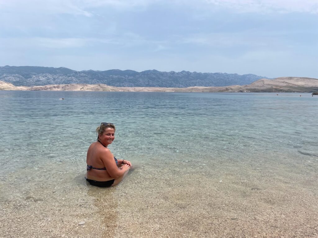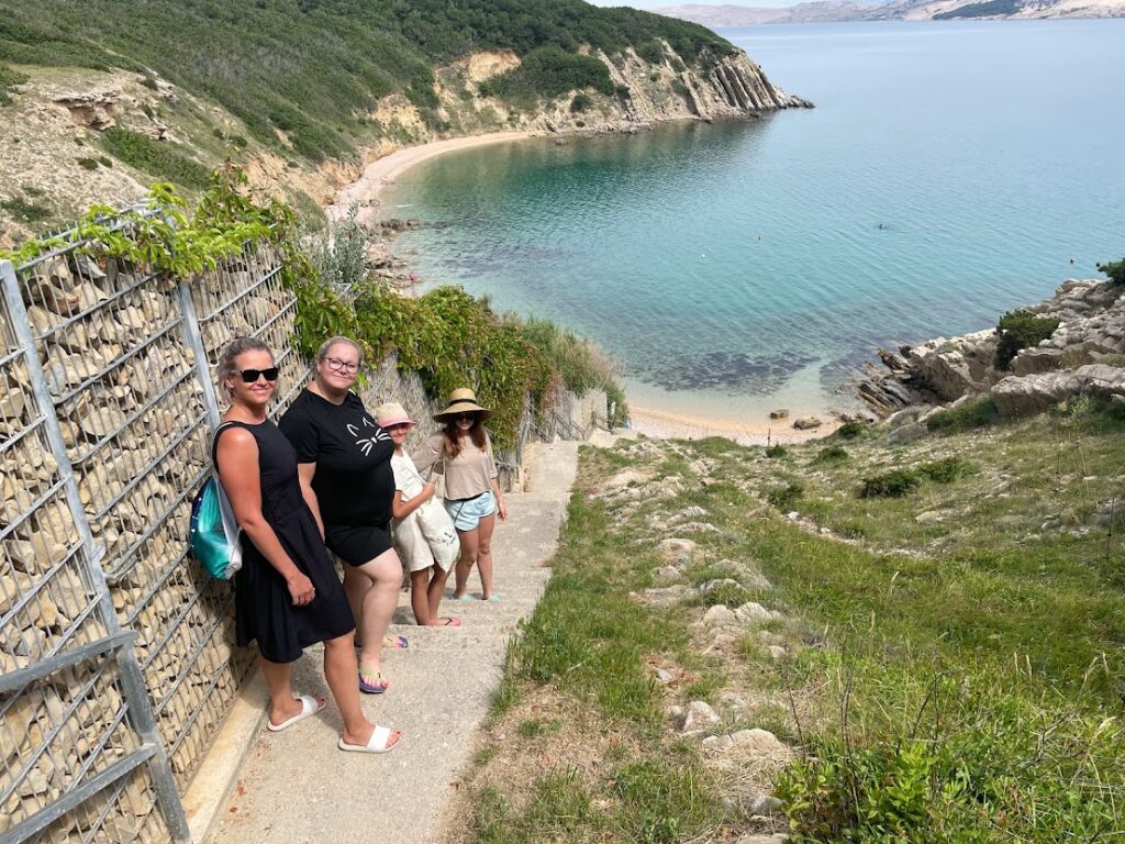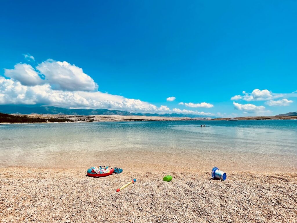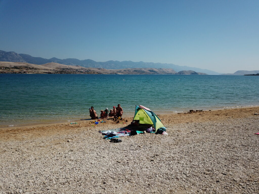 Pláž Rozin Bok se nachází asi 7 km za městem Pag. Auto je nutné zaparkovat podél silnice a poté sejít pěšky asi 1 km dolu mezi domy, na konci dlouhými schody (takže s sebou raději netahat toho nafukovacího jednorožce 🙂 ). Tato opuštěnější zátoka je bez restaurace, jde spíš o pláž patřící k vilkám místních zbohatlíků, takže jsou zde naveženy hezké oblázky a je tu fakt parádní koupačka, včetně možnosti pozorovat podmořský svět.