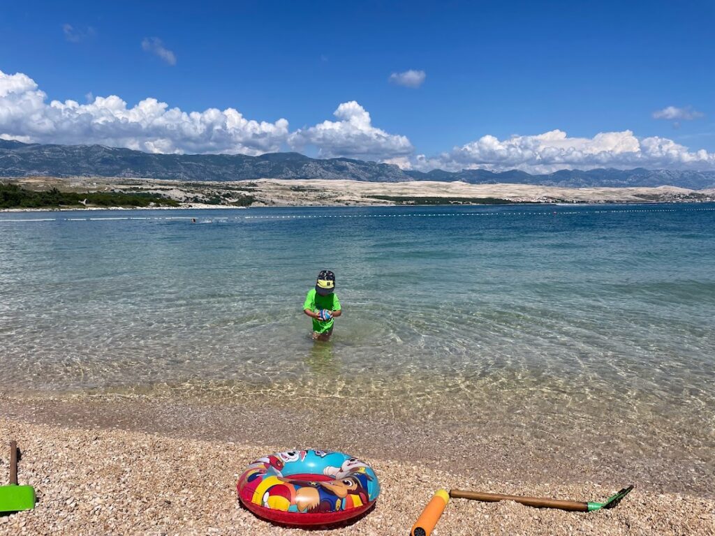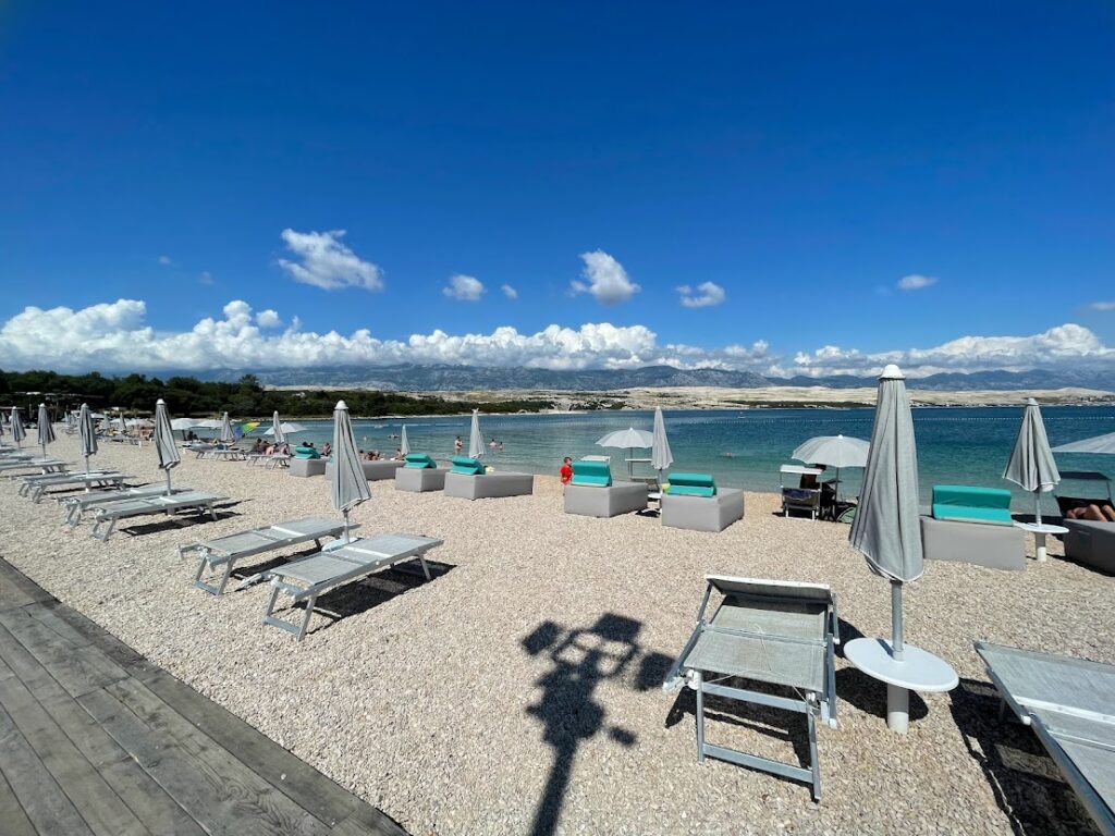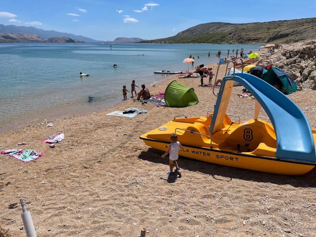 Sice je z Povljany asi 35 min autem, ale stojí za to ji vidět! Na této dlouhatánské užší pláži najdete klid, „kochačky“ a čistou vodu. Je zde také příjemná restaurace, pro děti mají nanuky a pečou pizzu. Parkovné na velkém, vždy poloprázdném parkovišti stojí 4 EUR.