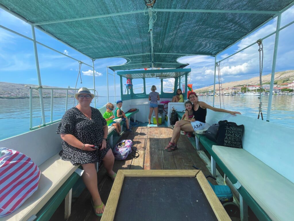 Loď vyráží ze samého centra města Pag, z mola poblíž městského úřadu (ul. Branimirova obala 1). Termín plavby si lze domluvit prostřednictvím FB Profilu „Leut Tours“ (majitelé jsou česky mluvící). Plavba trvá 4 hod., během kterých je několik zastávek, kdy je možné se vykoupat, prozkoumat jeskyně či krmit rybky. Výhledy jsou fantastické a zátoky a pláže, kde se zastavuje, patří mezi ty nejkrásnější pláže Pagu (např pláž Beritnica a Ručica). Cena dospělý 20 EUR, děti 10 EUR. Masky a šnorchly s sebou, případně zbytky svačiny na krmení rybek! 🙂